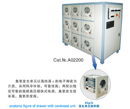 CFY-225:以氧氣為氣源(需另外配置空壓機(jī),冷干機(jī),制氧機(jī))抽屜積木式結(jié)構(gòu), 每個抽屜是一個有高頻高壓模塊驅(qū)動,風(fēng)冷板式臭氧發(fā)生部件的發(fā)生單元。標(biāo)準(zhǔn)化發(fā)生單元,額定發(fā)生量為25克,可互換,可單獨(dú)的啟動,關(guān)閉,可通過調(diào)節(jié)發(fā)生單元數(shù)量來增減臭氧發(fā)生總量。發(fā)生效率高,可靠性高,臭氧濃度高。 |